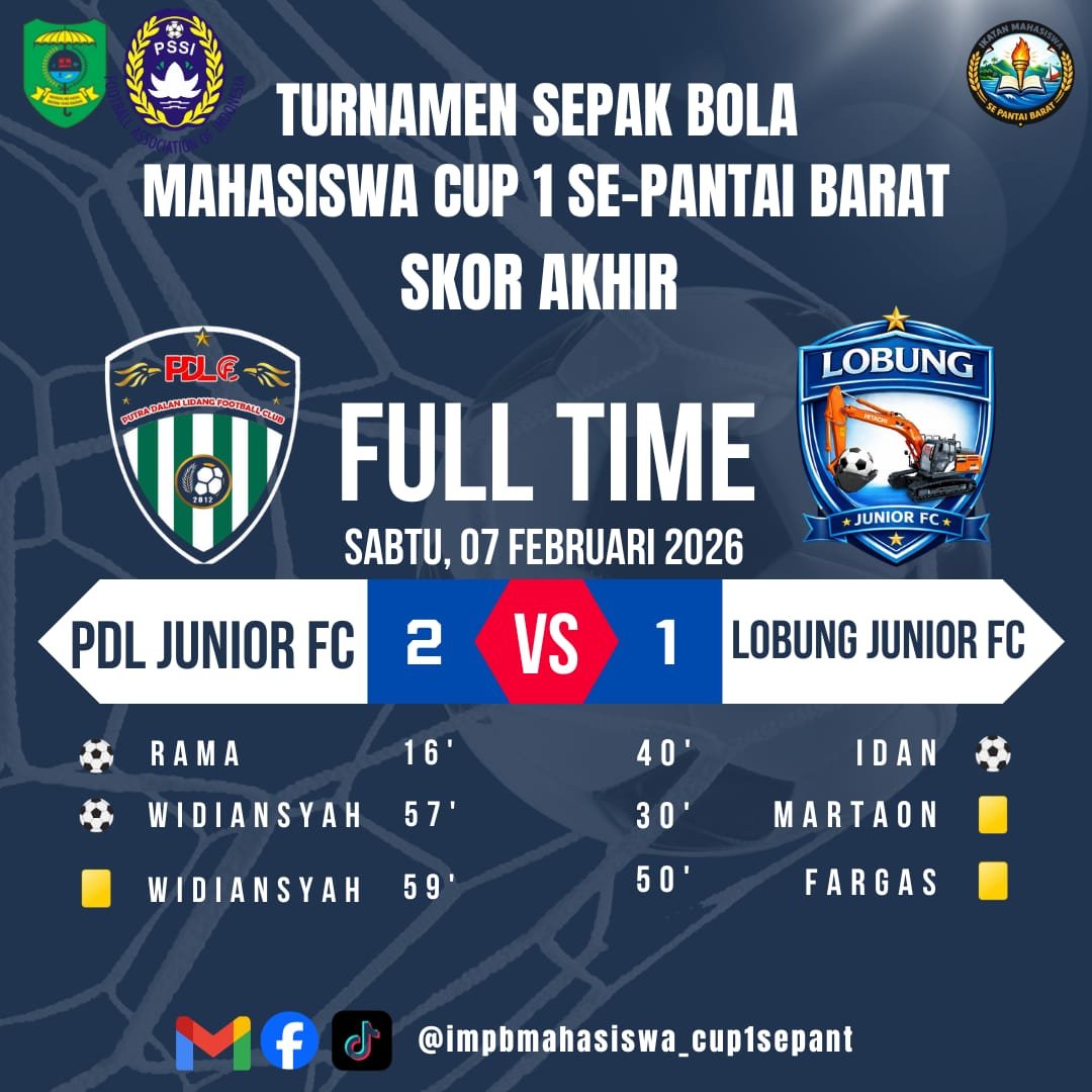 Dengan hasil ini, PDL Junior FC Dalan Lidang sukses mengamankan tiga poin penting dan membuka peluang besar untuk melaju ke babak selanjutnya pada Turnamen Mahasiswa Cup I Se-Pantai Barat.