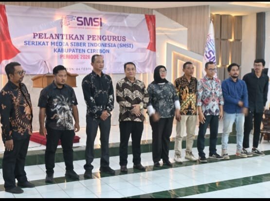 pelindungnegeri.my.id,Cirebon.–Ketua SMSI Jawa Barat resmi melantik Pengurus Serikat Media Siber Indonesia (SMSI) Kabupaten Cirebon masa jabatan 2026–2029.Acara pelantikan digelar di off room Pendopo Bupati Cirebon, Rabu (4/2/2026), menandai dimulainya kepengurusan baru organisasi perusahaan media siber di daerah tersebut.Acara tersebut dihadiri oleh H.Imron Bupati Kabupaten Cirebon,Forkopimda,TNI,POLRI,Pengusaha Media dan Undangan lainnya.